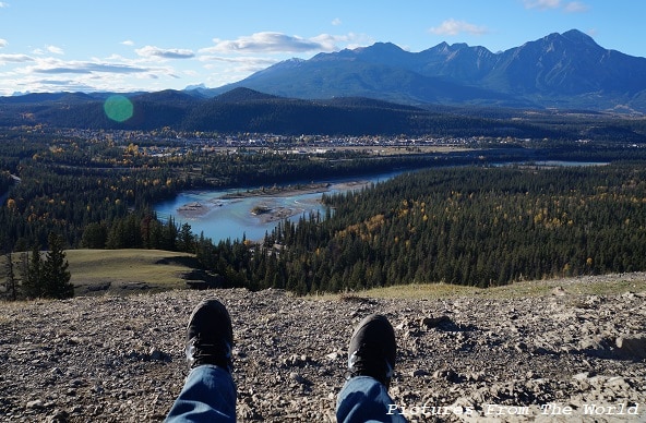 Vue de Jasper depuis le mont Old Fort (1170 mètres), dans les Rocheuses canadiennes.